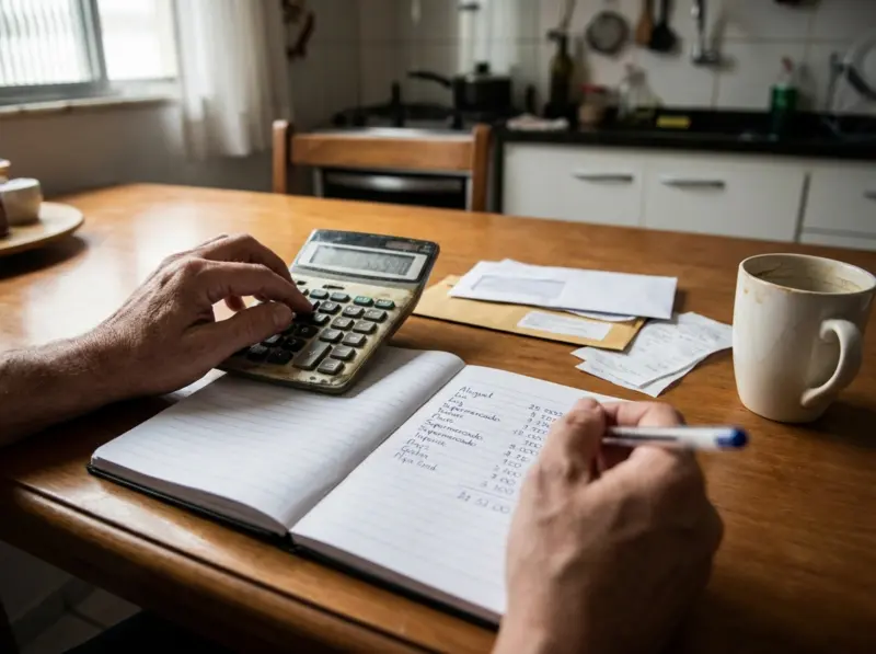 Agora, some as despesas variáveis essenciais. Não estamos falando do restaurante do fim de semana, mas de alimentação, transporte, medicamentos de uso contínuo e custos básicos de manutenção doméstica. Esse segundo grupo varia, mas existe um piso que não pode ser cortado.